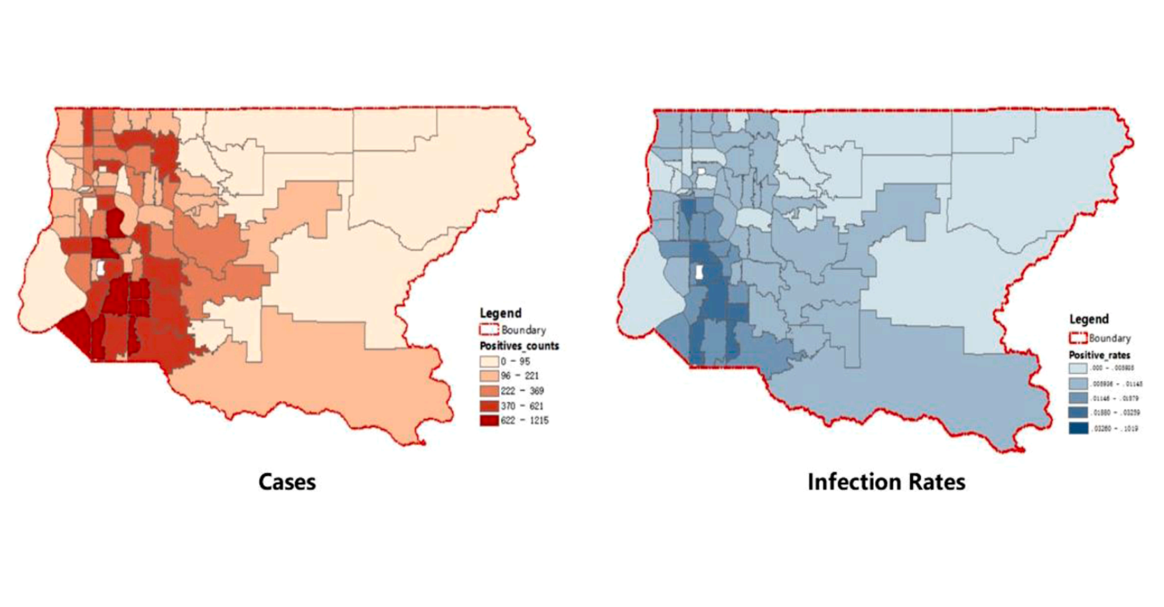 This study drew initial conclusions regarding the association between the built environment and the transmission of infection in the typically metropolitan area of King County, Washington. Integrating socioeconomic and meteorological factors, we focused on attributes related to the built environment, notably land use, POI distribution, population density, building concentration, road networks and households. Conducting PCA-MLR, PCC-MLR and GWR models, we explored methods that could be used to study infectious diseases in urban areas.
